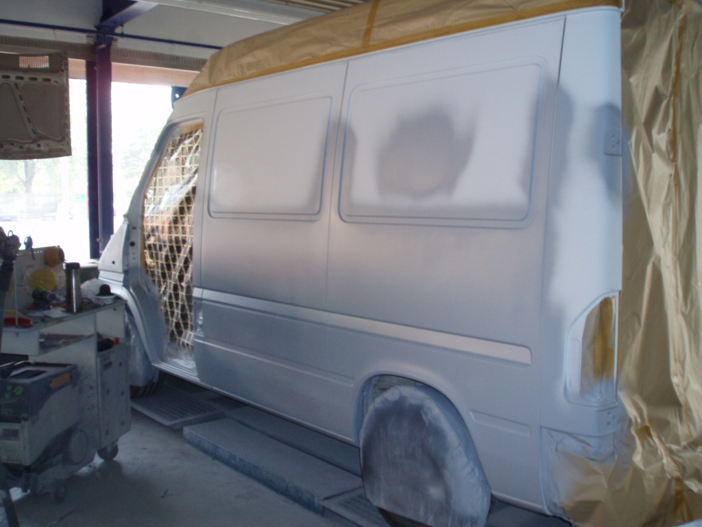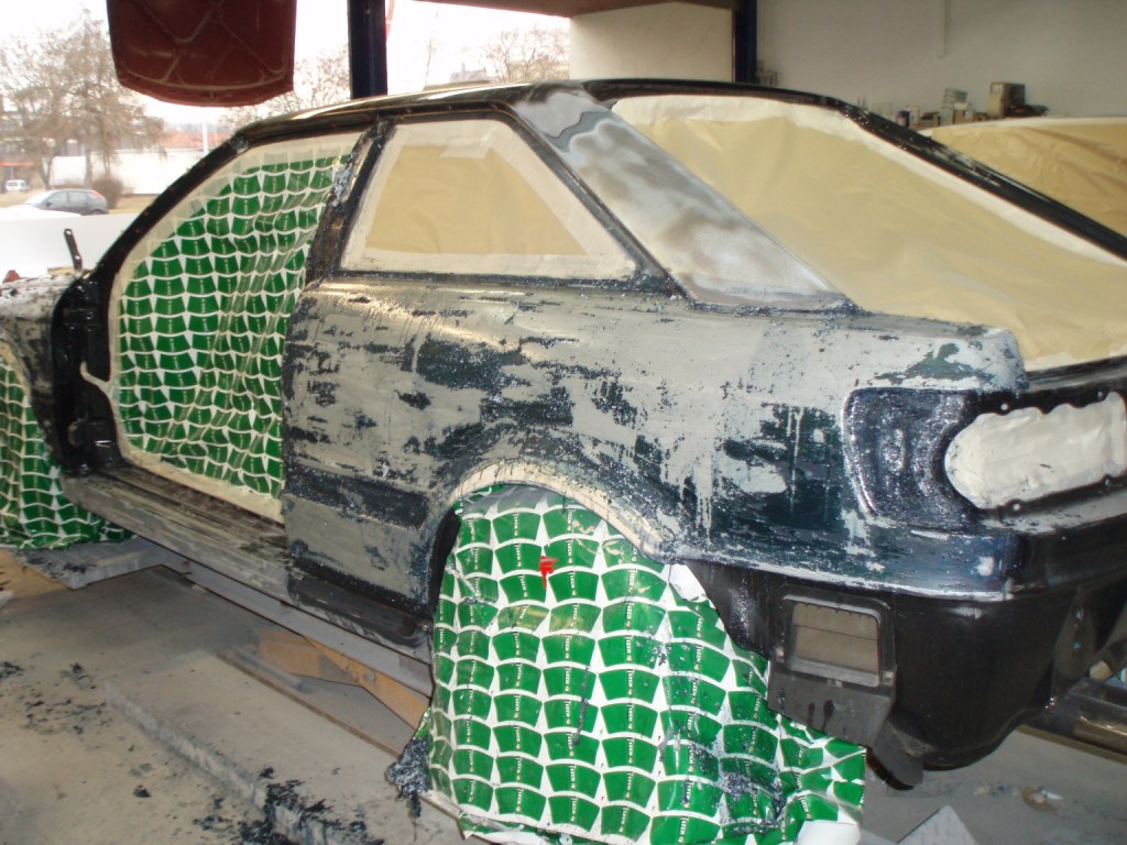 Neuer Lackaufbau für Show und Messe. Abbeizen des alten Lackes bis auf die Verzinkung und dann begann der Neuaufbau am Ende mit mehreren Schichten hochglänzenden Klarlack, wo zum Finish nochmal komplett nass geschliffen wurde und anschließend auf Hochglanz poliert; um wirklich kein bisschen Struktur mehr im Lack zuhaben.
